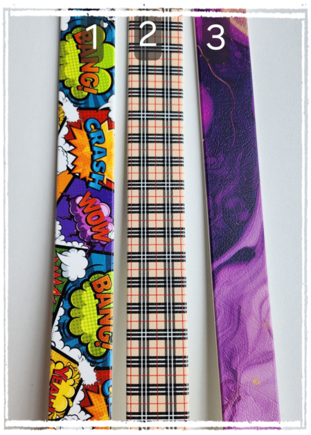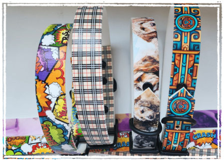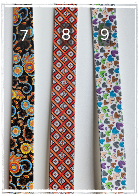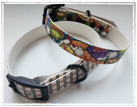 Ich habe im moment nur ein paar Muster. Wenn Ihr etwas bestimmtes sucht dann meldet euch einfach bei mir. Das Biothane ist 25 mm breit und zwischen 60 und 70 cm lang. Es wird mit einer Doppelstegrollschnalle, einem D-Ring und Buchschrauben gefertigt. Die Buchschrauben werden verleimt. Die Rollschnallen gibt es in schwarz, regenbogen und messing. Das Halsband ist verstellbar.