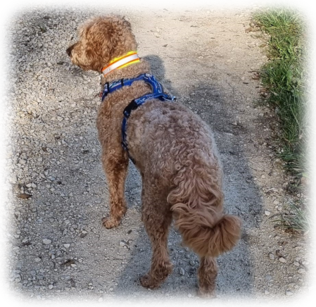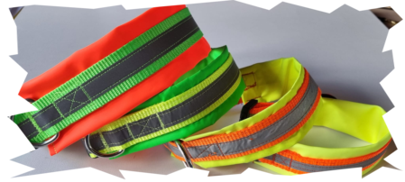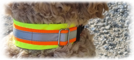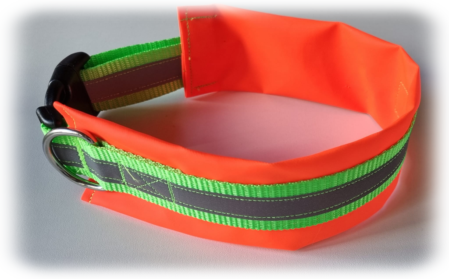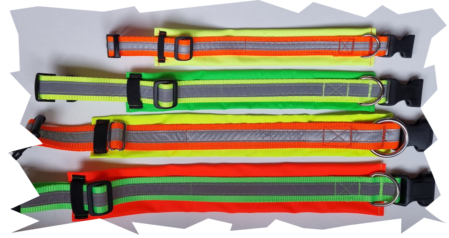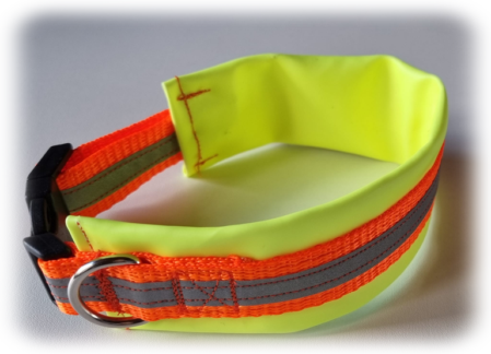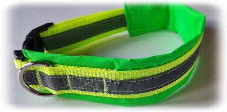 Variante 2 : Neon grünes Gurtband/reflektierendes Band/neon oranges Polster/ Klickverschluss verstellbar