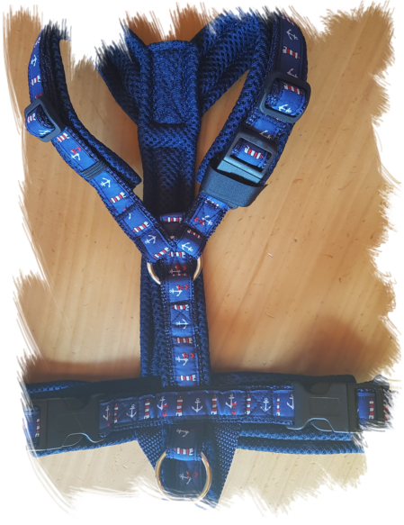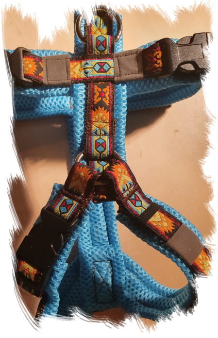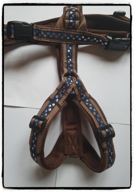 Ripsband blau silber Pfoten/ Gurtband hellbraun/ Airmesh dunkelbraun