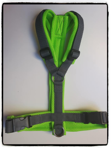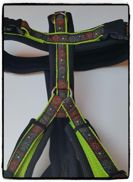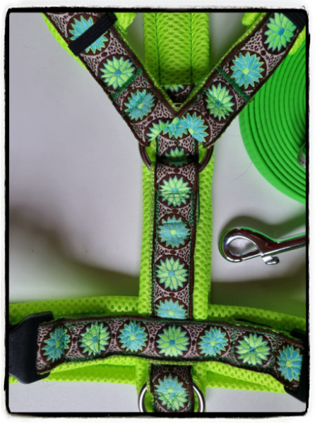 Webband Blumen hellgrün auf braun / Gurtband lime/ Airmesh neon grün