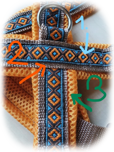 Webband Indianer orange-türkis/ Gurtband rot/ Airmesh schwarz
