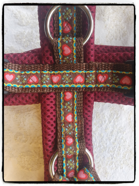 Webband Herzen braun/rosa, Gurtband dunkelbraun , Airmesh bordeaux