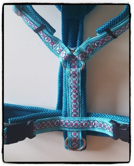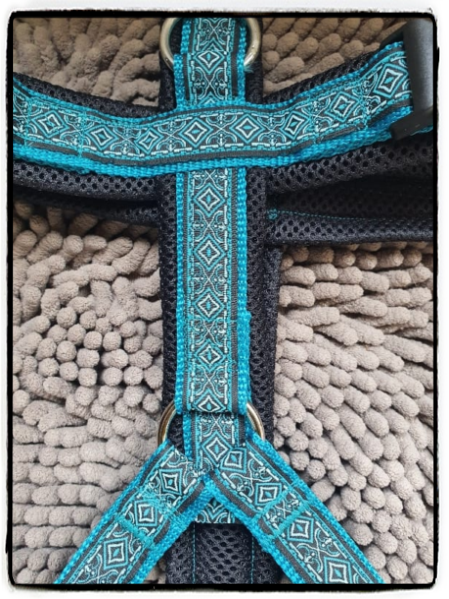 Webband türkis ,gelbe Sterne/ Gurtband blau/ Airmesh schwarz