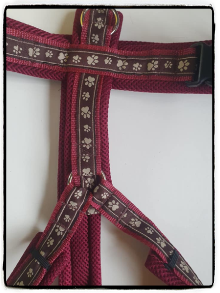Webband Pfoten braun/ Gurtband bordeaux/ Airmesh bordeaux