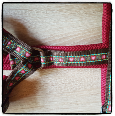 Webband Herzen braun-rosa/ Gurtband dunkelbraun/ Airmesh petro