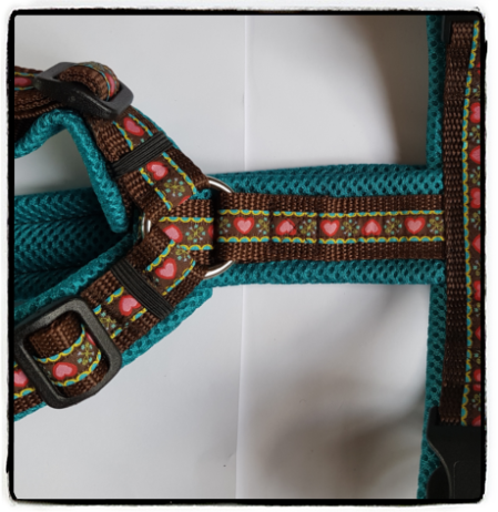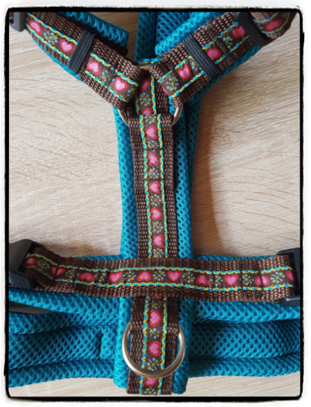 Webband Herzen braun/rosa, Gurtband dunkelbraun, Airmesh petrol